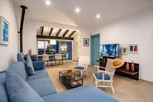 We had a fantastic time at Josefa’s place. The villa is conveniently located in the center of Pollensa, a short walk from shops, bars, and restaurants, but is quiet and private with spectacular views. The villa was spacious, well presented, spotlessly clean, and provided everything we needed for our stay. We loved having breakfast on the terrace (the pastries from the local bakery were delicious!) and relaxing in and around the pool on sunny days and in the hot tub on overcast days. Our daughters really appreciated the table tennis table. We didn’t hire a car (I suspect parking near the villa would have been tricky) but used local buses to visit the beach at Puerto Pollensa and Palma. Don’t miss the market in Pollensa on Sunday morning.